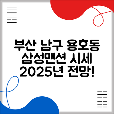 부산시 남구 용호동 삼성맨션 아파트의 시세가 2025년 10월에 어떻게 변동할 것인지에 대한 고민이 많습니다.
