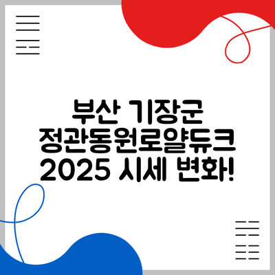 부산시 기장군 정관읍 정관동원로얄듀크1차 아파트의 2025년 12월 시세를 예측하고 투자 전략을 세우는 데 도움이 되는 가이드를 제공합니다. 투자는 단순한 선택이 아니라 고민의 결과입니다.