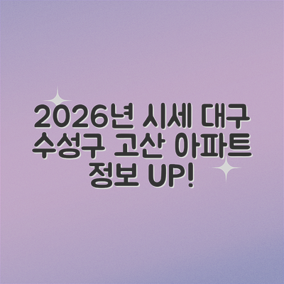 대구시 수성구 시지동 고산노변타운 아파트의 투자 매력에 대해 좀 더 깊이 들어가 볼까요? 이 아파트는 꾸준히 관심을 받고 있으며, 2026년 1월 시세는 다양한 투자 전략을 고려해볼 만한 위치에 있습니다. 그렇다면, 투자자들이 어떤 전략을 활용할 수 있을까요?